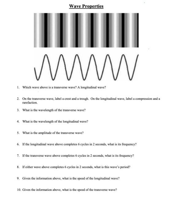 Solved 1. Draw 2 wavelengths of a transverse wave Label the | Chegg.com 1. Draw 2 wavelengths of a transverse wave Label the erest, trough, wavelength, amplitude. 2 Draw a transverse wave with twice the frequency compared to d. 3. A wave is a disturbance that transfers from one place to another. The material that a wave travels through is called its If a wave requires a medium in order to propagate, it is ...