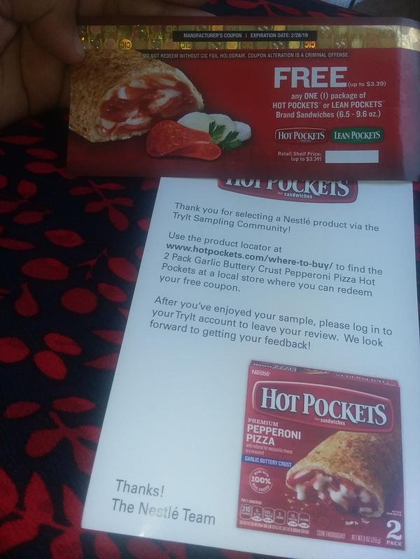 Hot Pockets - Hot Pockets - Pepperoni Pizza Stuffed Sandwich - Frozen Hot Pockets Hot Pockets - Hot Pockets - Pepperoni Pizza Stuffed Sandwich - Frozen. Serving Size : 1 package yields. 734 Cal. 42 % 77g Carbs. 43 % 35g Fat. ... Join for free! Daily Goals. How does this food fit into your daily goals? Calorie Goal 1,266 cal. 734 / 2,000 cal left. Fitness Goals : Heart Healthy. Fat 32g. 35 / 67g left. Sodium 949g ...