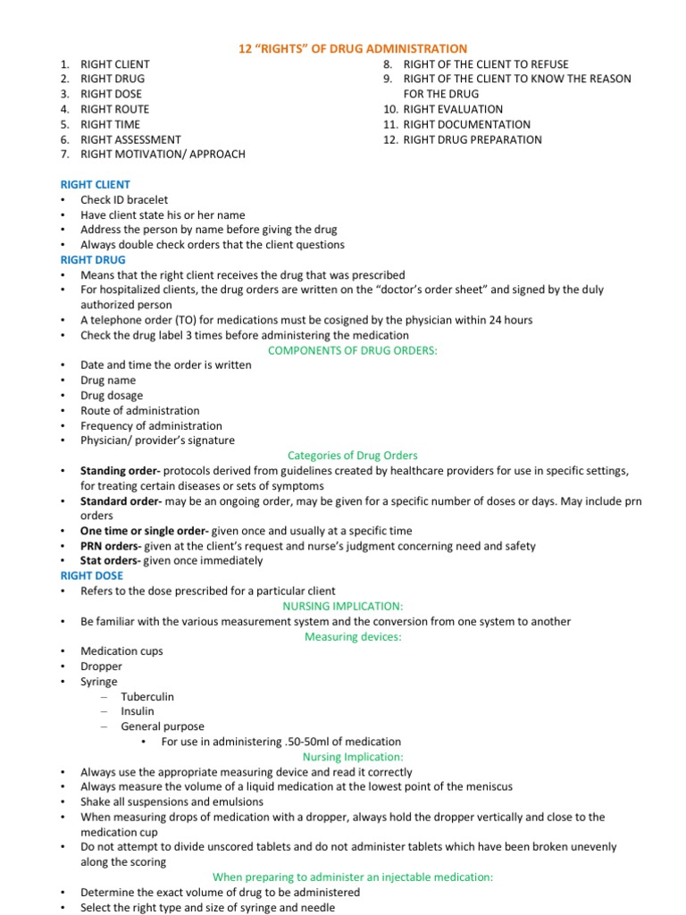 PDF Medication Checks and the 10 Rights Cheat Sheet - NursingSOS THE 10 RIGHTS OF MEDICATION ADMINISTRATION: Here are the 10 "rights" of giving medications. You may see a subset of this list (like the 5 rights, 6 rights, 8 rights, etc.). ... 3 Medication Checks and the 10 Rights Cheat Sheet LEGAL DISCLAIMER: This study guide is intended for educational purposes only. This is not medical advice and 6 Rights to Medication Adminstration and 3 Checks - ER RN 1. Remove the medication from the locked area and check the prescription label against the medication log to make sure that they match: this is the 1st check. 2. Before pouring the medication, check the prescription label against the medication order to make sure that they match: this is the 2nd check. 3. After you pour the medication, but ... Medication Administration Flashcards | Quizlet Study with Quizlet and memorize flashcards containing terms like The nurse is administering medications to the client. What does the nurse explain to the client who asks about the checks of medication administration? Select all that apply., A nurse has administered a pain medication to the client. What should the nurse do next?, The client overhears the nurse reviewing the … Clinical Policy Medication Administration - University of … b. Verifying medication orders associated with the patient's treatment, including planned surgical or other invasive procedure(s) c. Collaborating with other professionals to resolve discrepancies d. Verifying medication allergy(s) prior to administering any medications. 3. The 8 Rights of Medication Administration will be observed: a. Right ...