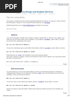 12+ ways to name and label variables in Stata - Irina Mirkina - Google forvalues j = 1/20 { label variable var`j' `=var`j' [1]' rename var`j' `=var`j' [1]' } The variable names in Stata can't start with a number, so, if the first row of observations contains... Stata: Renaming and Labeling Variables - YouTube Instructional video on how to rename and label variables and variable values using Stata, data analysis and statistical software. For more information, visit SSDS at... Renaming variable labels with label values - Statalist // variable labels to names . foreach v of varlist v* { 2. local x : variable label `v' 3. rename `v' `=strtoname (`x')' 4. } claimingforover12months_jul not found syntax error syntax is rename oldname newname [, renumber [ (#)] addnumber [ (#)] sort ...] rename (oldnames) (newnames) [, renumber [ (#)] addnumber [ (#)] sort ...] rename … Re: st: rename variables with label values - Stata Re: st: rename variables with label values Daphna, you can use a macro inside a loop, like this: foreach v of varlist var1 var2 var3 { local x : variable label `v' rename `v' `x' } The procedure requires the labels to be valid (and unique) Stata names.