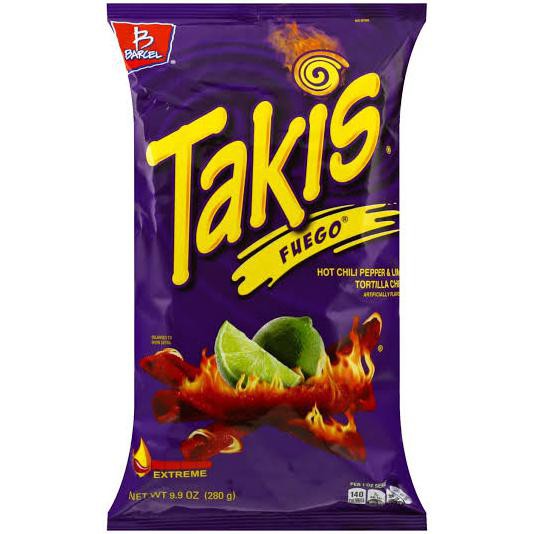 Takis® Rolled | Tortilla Chips | Barcel USA Takis Fuego rolled tortilla chips are the taste of fire. A bite of lava. Like fire-walking with your tongue. Icons / Line Arrow Right Created with Sketch. Takis Blue Heat® Some legends say that blue flames burn the hottest of all. It's time to put that to the test. Icons / Line Arrow Right Created with Sketch. Takis® Crunchy Fajitas ¡Caliente! Takis Food - Walmart.com Takis Rolls Fuego 46 ct Multipack 3+ day shipping $29.80 Barcel, Mini Takis, Fuego Rolled Tortilla Snacks, 25 Count (1.2oz Each), 30.9oz Bag 2 3+ day shipping $29.88 Takis Fuego Rolled Tortilla Chips, Hot Chili Pepper and Lime Artificially Flavored, 6 Individual Bags, 4 Ounces Each, Net Weight of 24 Ounces 3+ day shipping $30.90
