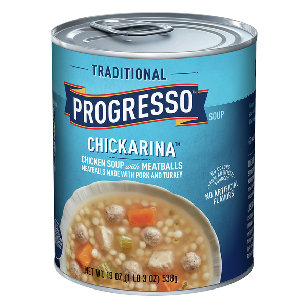 Progresso - Intelligence at your finger tips Progresso - Intelligence at your finger tips. You have successfully signed out of Cloud School. Progresso Traditional, Chickarina, Chicken Soup With Meatballs Nutrition facts on label says 1.5g per serving. No rating. Description. Personalized health review for Progresso Traditional, ...