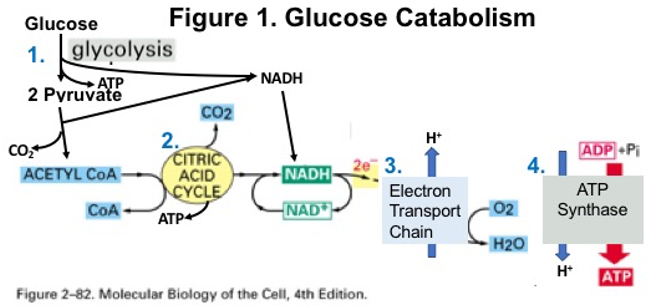 Label the scheme of glucose catabolism. Glycolysis | Cellular respiration | Biology (article) | Khan Academy Each step is catalyzed by its own specific enzyme, whose name is indicated below the reaction arrow in the diagram below. Step 1. A phosphate group is transferred from \text {ATP} ATP to glucose, making glucose-6-phosphate. Electron Transport Chain | Biology for Majors I - Lumen Learning Glucose catabolism connects with the pathways that build or break down all other biochemical compounds in cells, and the result is somewhat messier than the ideal situations described thus far. For example, sugars other than glucose are fed into the glycolytic pathway for energy extraction. Moreover, the five-carbon sugars that form nucleic ... The citric acid cycle | Cellular respiration (article) | Khan Academy Whatever you prefer to call it, the citric cycle is a central driver of cellular respiration. It takes acetyl CoA \text{CoA} CoA start text, C, o, A, end text —produced by the oxidation of pyruvate and originally derived from glucose—as its starting material and, in a series of redox reactions, harvests much of its bond energy in the form of NADH \text{NADH} NADH start text, N, A, D, H ... Carbohydrate Metabolism | Anatomy and Physiology II - Lumen Learning Describe the process of ATP production through oxidative phosphorylation. Carbohydrates are organic molecules composed of carbon, hydrogen, and oxygen atoms. The family of carbohydrates includes both simple and complex sugars. Glucose and fructose are examples of simple sugars, and starch, glycogen, and cellulose are all examples of complex ...
